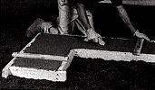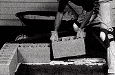 3. Remove the blocks and lay 1/8" bed of prepared QUIKWALL® SBC on the footer. This bed of QUICKWALL® SBC helps in leveling the first course if there are slight irregularities in the slab of footer. Relay the bottom course checking alignment and level every 3 to 4 blocks.