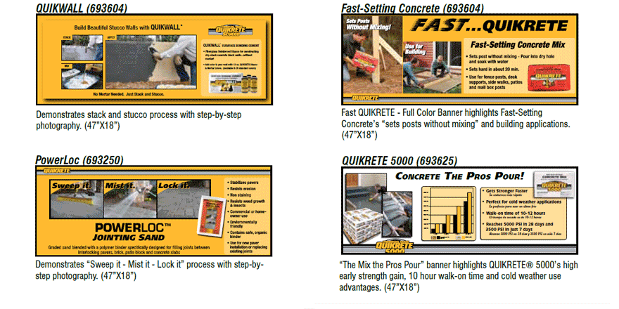 Designed for use on ‘H’ racks or as in-store signage. Features at-a-glance quantity calculator, application and product photographs and product descriptions. Pressure sensitive adhesive back. (36”X4”)