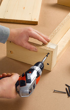 2. Fasten the end panels to the end blocking with 2" screws. Install the bottom panel with screws driven through the panel and into the bottom blocking. Make sure all panels and blocking are flush along the top and bottom edges. Note: You may need to leave one end open in order to work, as we have done here.