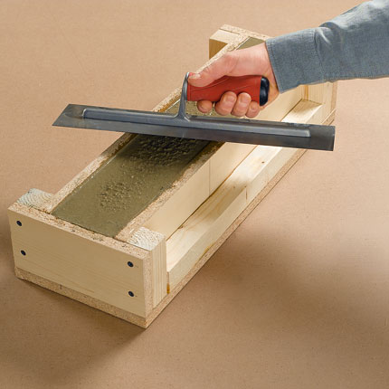 To shape the top and/or side edges of your border castings, secure pieces of wood molding or other objects into the bottom or side of the mold. The casting will come out with the relief, or negative profile, of the object.