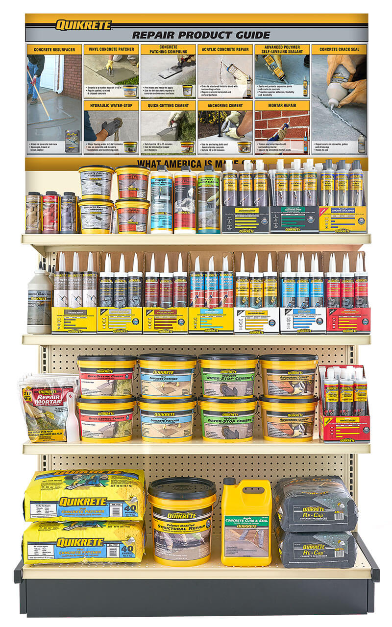 QUIKRETE checks all the boxes for your project needs. With a comprehensive and customizable assortment of concrete repair products, the concrete repair product sets solve for 96.85% of all concrete problems – from fixing hairline cracks in concrete to bonding broken corners. Sets are available in 2' and 4' configurations that cater to both the Homeowner and the Contractor.