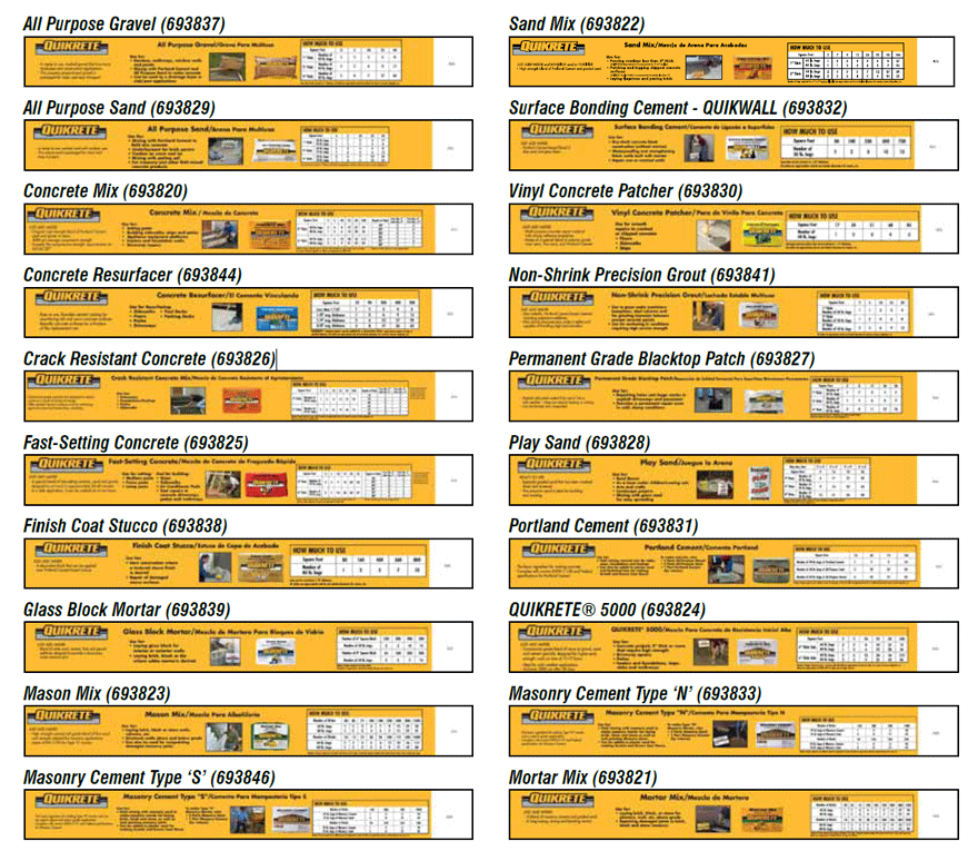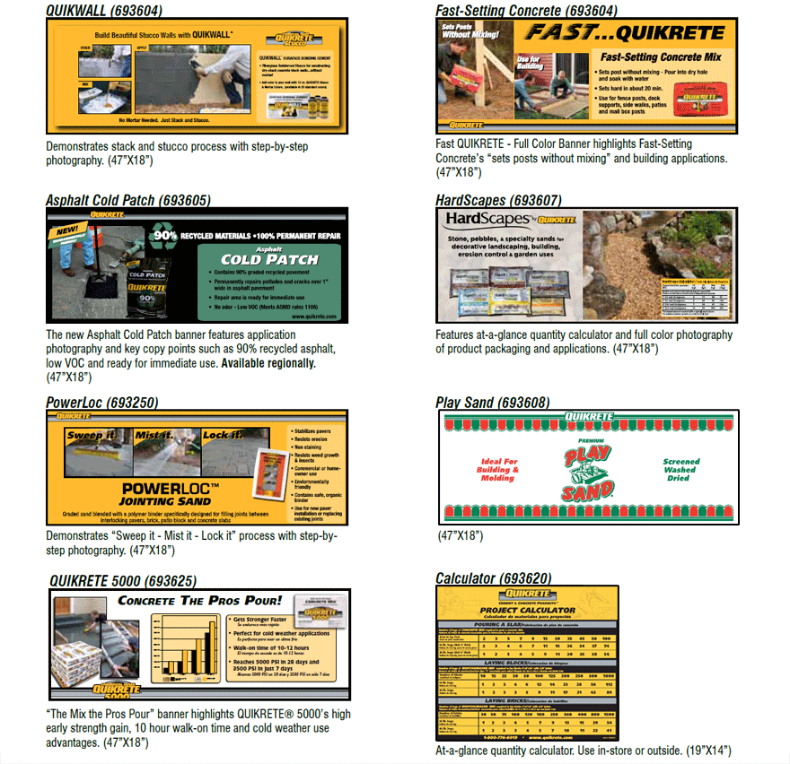 Designed for use on ‘H’ racks or as in-store signage. Features at-a-glance quantity calculator, application and product photographs and product descriptions. Pressure sensitive adhesive back. (36”X4”)