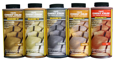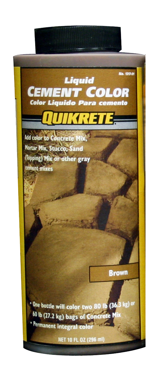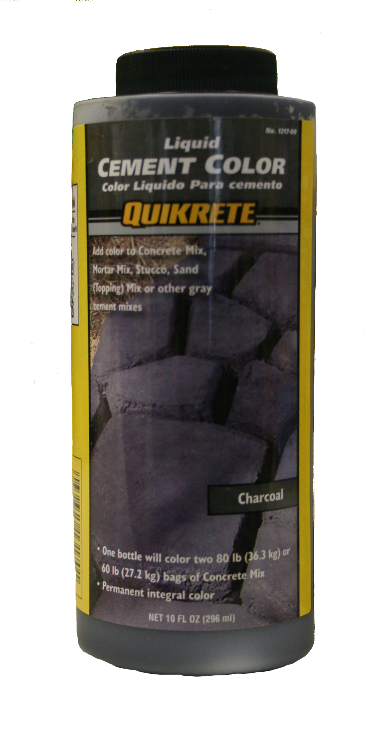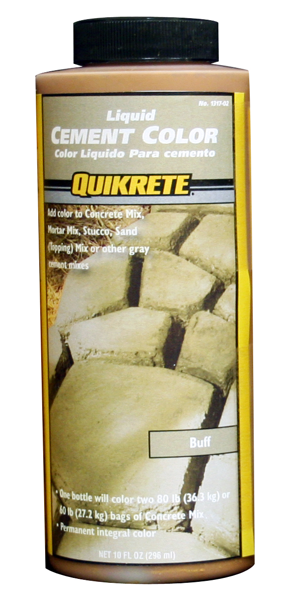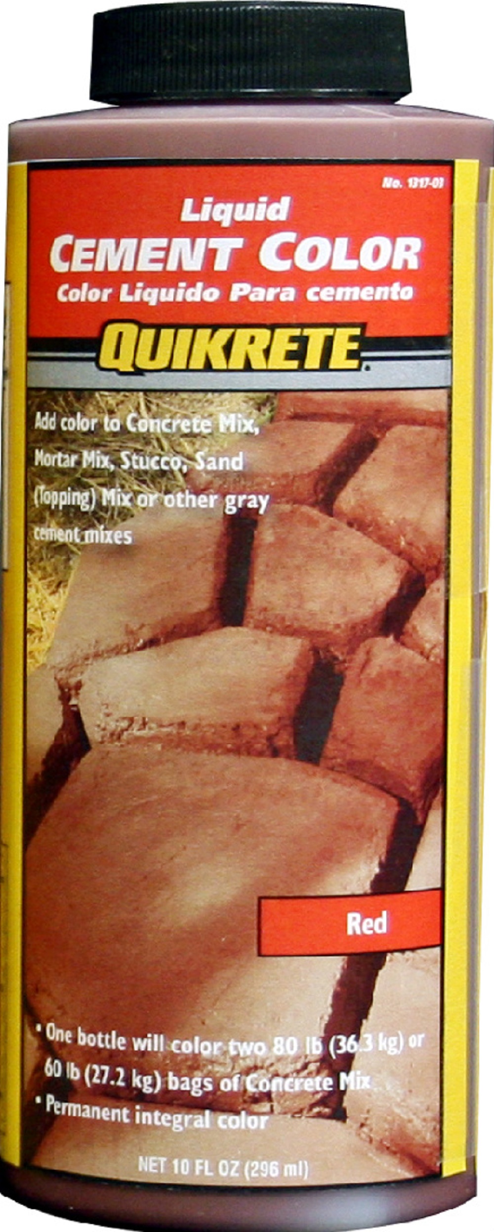 QUIKRETE® Liquid Cement Color (No. 1317) is a liquid coloring agent used to customize the color of your concrete project. Mix with water and then add to dry concrete mix. One bottle will mix with two 80lb. or 60lb. bags of Concrete Mix. Available in Red, Brown, Buff, Charcoal and Terra Cotta.