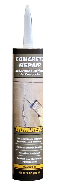 QUIKRETE® Concrete Repair (No. 8620-10) is a superior sanded acrylic latex formulation for crack repair in concrete, including concrete, stucco or masonry walls, sidewalks, patios and driveways.
