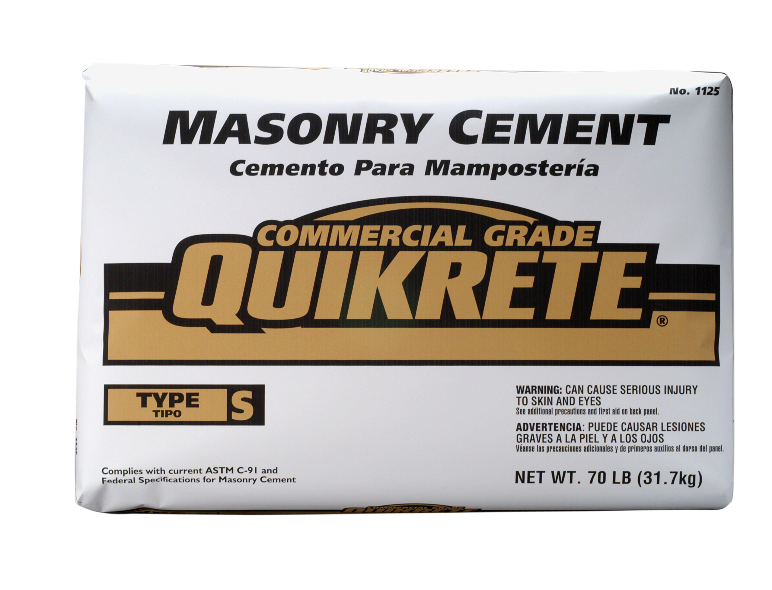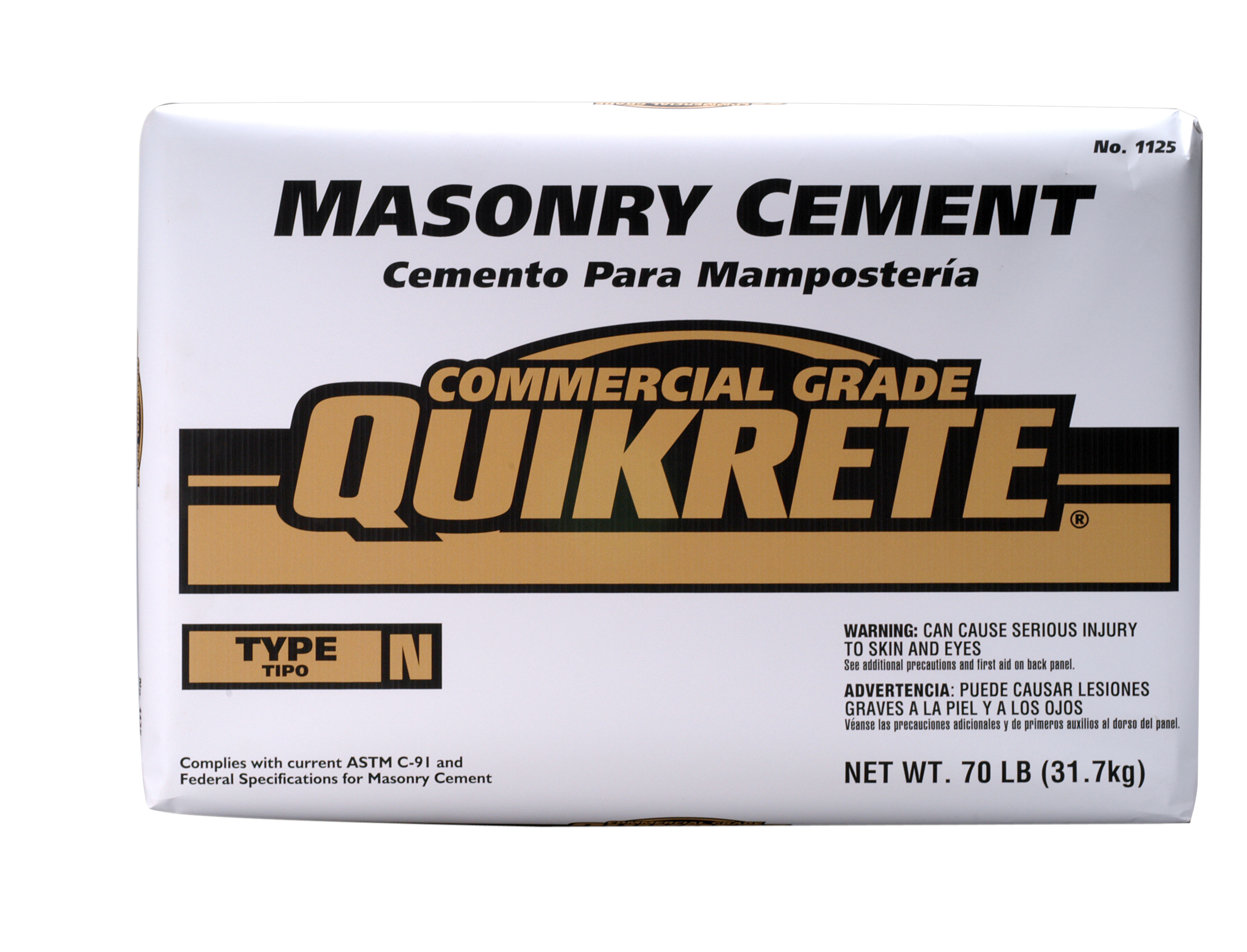 QUIKRETE® Masonry Cement (No. 1125) complies with current ASTM C91 and Federal Specifications from masonry cement. Available in Type S, Type N, and Type M.
