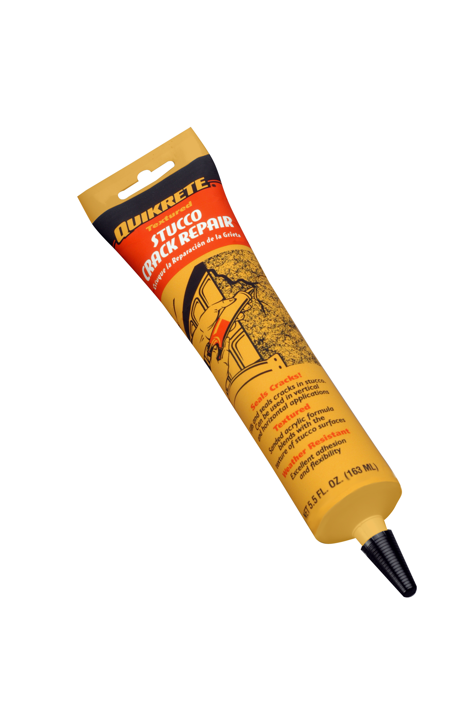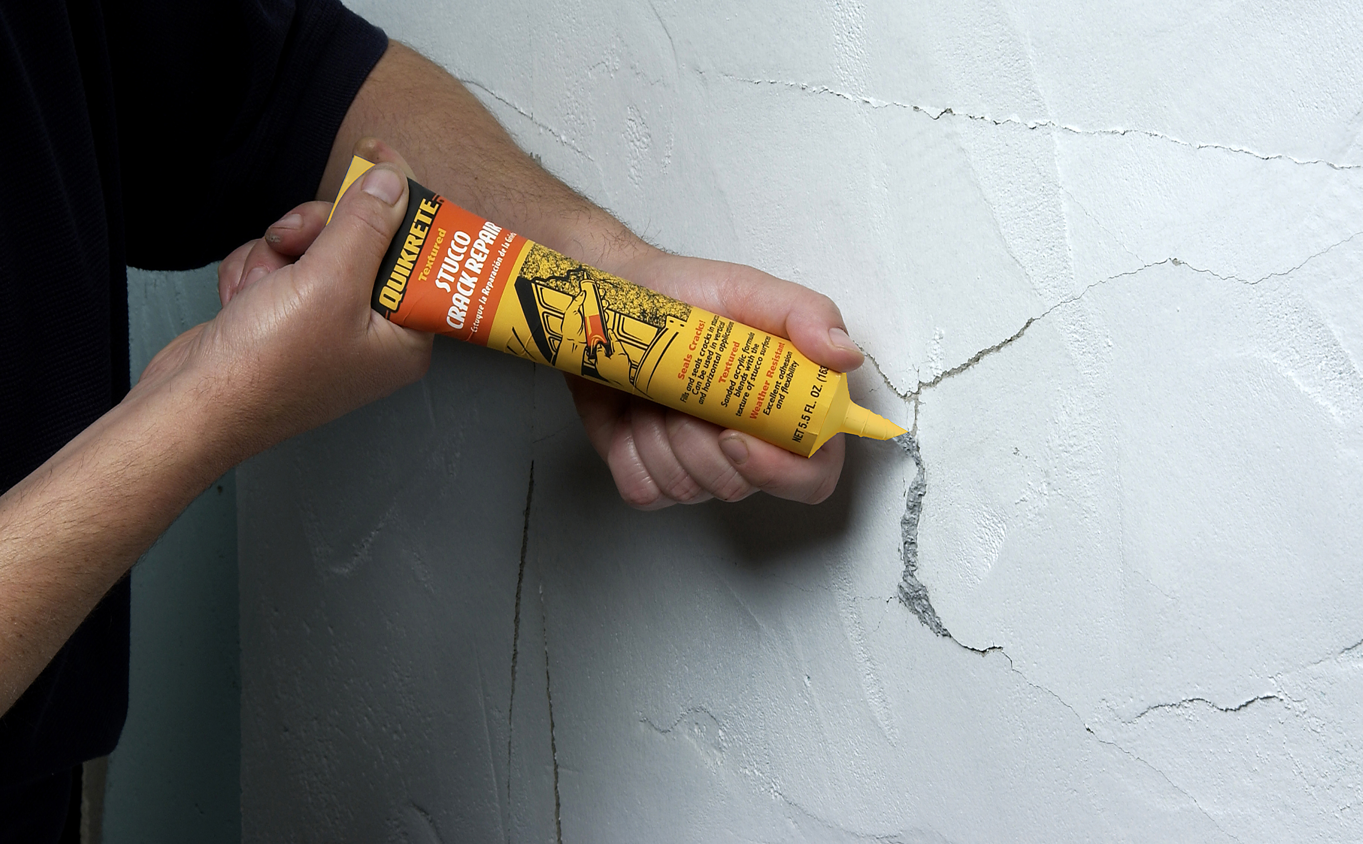 QUIKRETE® Stucco Repair (No. 8650) fills and seals cracks in stucco up to 1/2" (12mm) wide. Weather resistant formula provides excellent adhesion and flexibility. Sanded acrylic formula blends with the texture of the surrounding stucco surface.