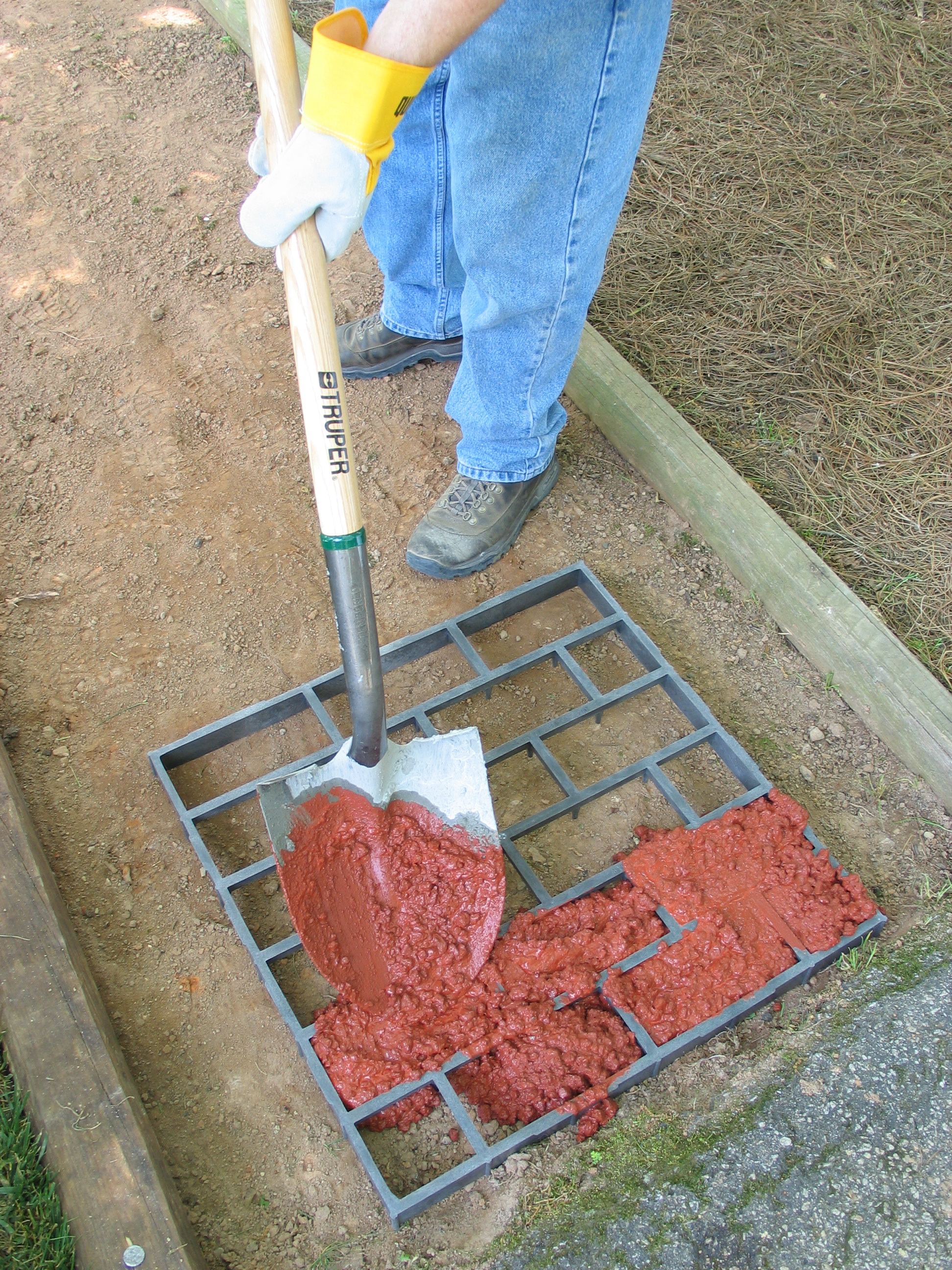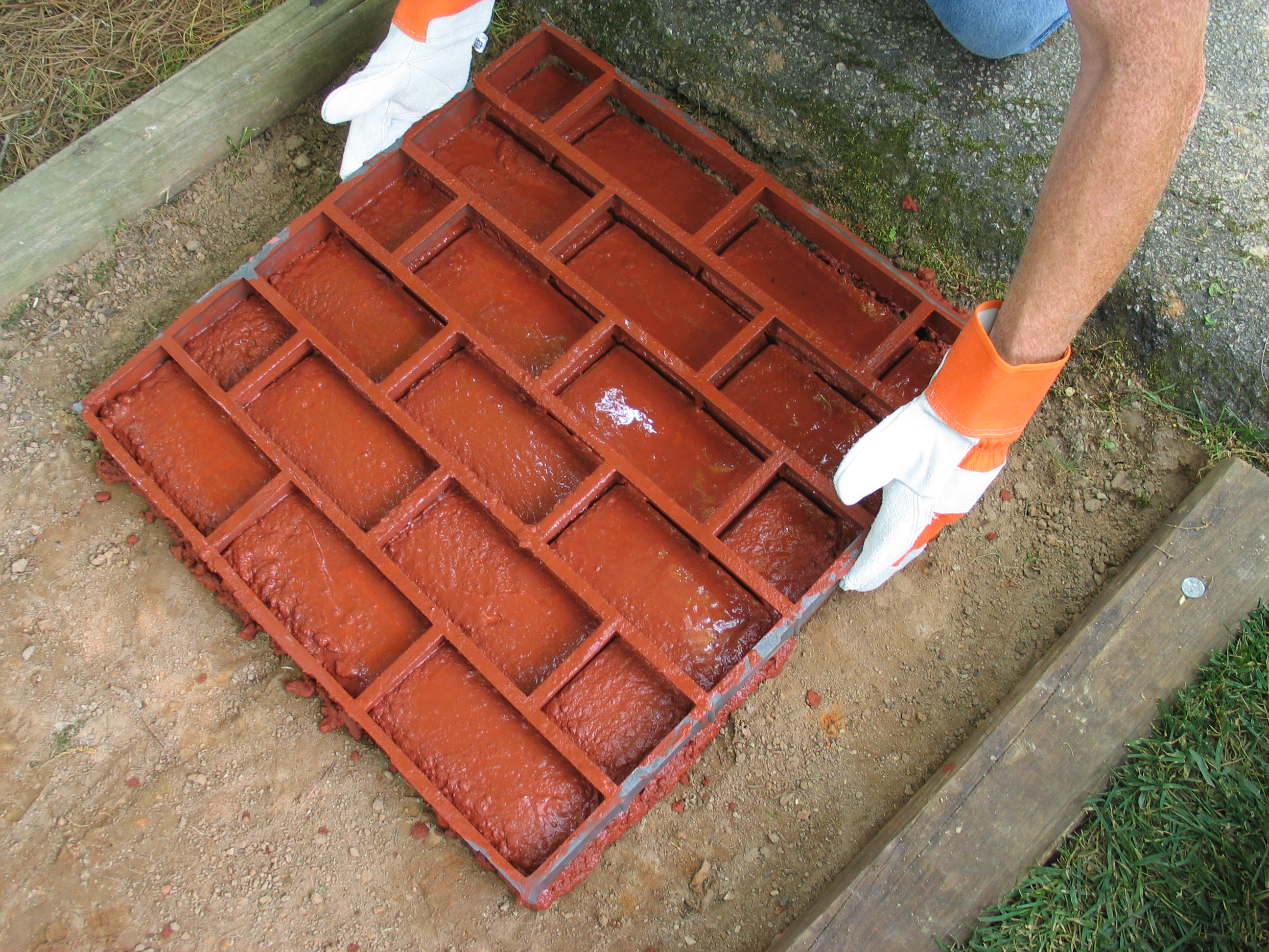 The QUIKRETE® Walk Maker™ Building Form-Running Bond Brick Pattern (No. 6921-33) is a reusable plastic mold. Fill the mold with 80 lbs. of concrete mix (1-80lb bag fills 1 mold), trowel, and remove the mold.