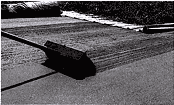 A damp, stiff-bristled broom produces a course texture, which is ideal for slopes and heavy traffic areas. Medium to fine textures are created with a dry, soft-bristled broom. Always pull the broom toward you in parallel, slightly overlapping strokes; never push it back and forth. Sidewalks and driveways should be broomed at right angles to the direction of traffic. Use the broom to create curves, waves, even herringbone patterns.