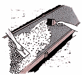 Stones of various shapes and sizes can be individually hand-set or sown like seeds into a surface of slightly stiff concrete. Coarse aggregate, such as large gravel, may be applied in the same way. Be sure to use clean, damp stones; after the application, press them into the mix (or slightly under the surface) with a heavy screed. Next, use a stiff-bristled broom to remove any excess mortar. Finally, clean the surface with a fine spray of water until there is not noticeable cement fill left on the aggregate. Larger cobblestone and rive stone can also be set in the surface of concrete slabs and step treads. This technique is very similar to settling pavers in a mortar bed. The fresh concrete must not be allowed to set up too stiffly before placing the stone. Press the stones into the concrete so that more than half of each one is embedded. Cover the stones with a piece of wood to protect them from being damaged if you find it necessary to hammer them into place. Brush between stones with a small hand broom for clean, even joints.