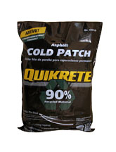 QUIKRETE® Asphalt Cold Patch (No. 1701-58) is an environmentally friendly product specially formulated with a high percentage (>90%) of graded recycled asphalt pavement and special bonding agent. It is designed to be used for repairing potholes and cracks in asphalt pavements.
