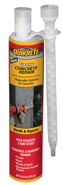QUIKRETE® Epoxy Concrete Repair (No. 8620-49) is a multi-purpose, high strength, rapid cure, two component epoxy bonding and repair adhesive. Its non-sag property makes it suitable for vertical repairs and repairs 1/2 in (13 mm) or larger.