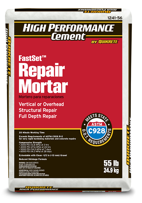 High Performance Cement FastSet™ Repair Mortar is a polymer modified shrinkage compensated, rapid setting, high strength mortar specifically formulated to make structural repairs in vertical and overhead applications. It exceeds requirements of ASTM C928 R2 for structural concrete repair.