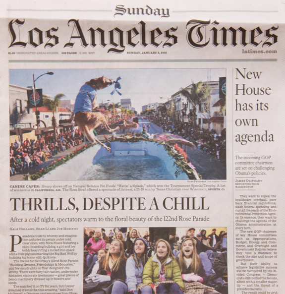 Our float was even featured in a two page color spread in the Los Angeles Times
